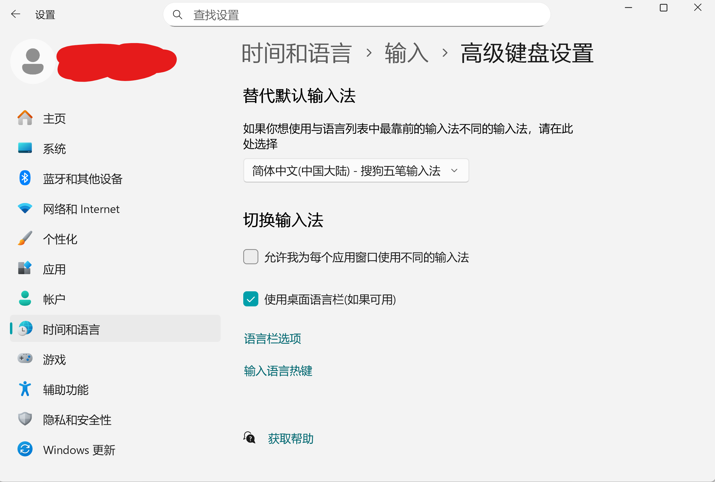 设置 - 时间和语言 - 输入 - 高级键盘设置 - 切换输入法 - 使用桌面语言栏(如果可用) - 勾选