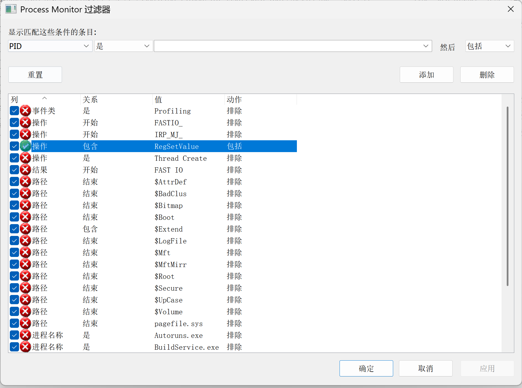 其它的使用重置过滤器操作,就会添加这些默认的排除项。