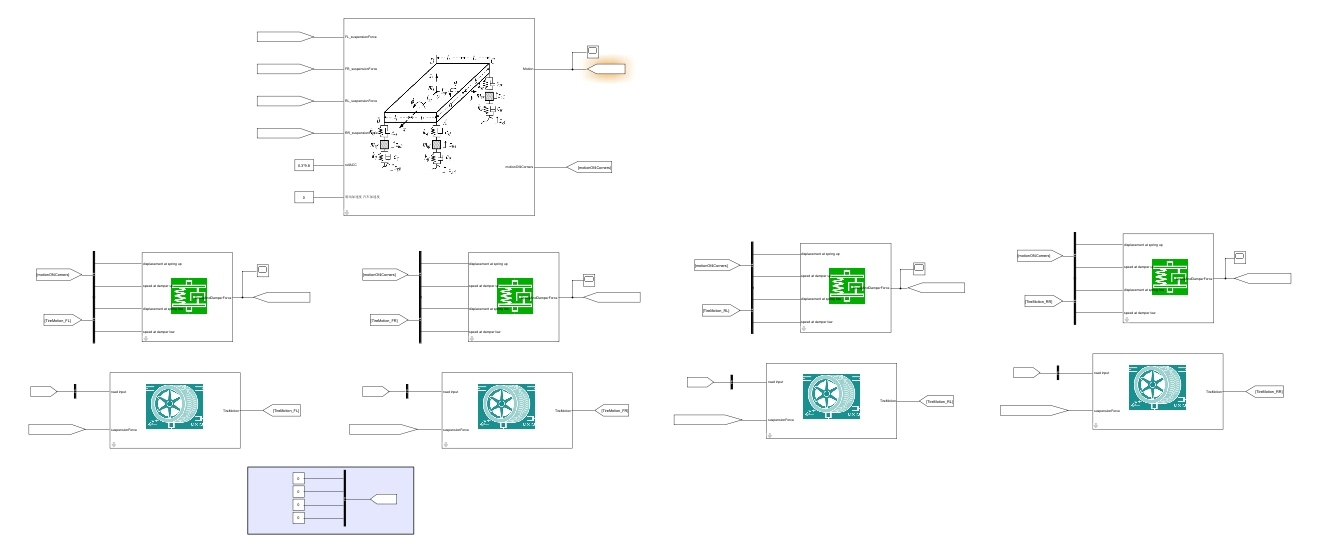 这里故意留了刚度调节接口,方便后续做参数灵敏度分析。非线性阻尼用Lookup Table实现,比线性模型更能模拟真实减震器的压缩/回弹不对称特性。