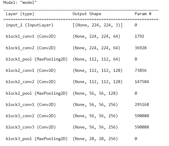 MaxPooling2D, name='block2_pool'):- 作用:再次 2 倍下采样( 112→56),聚焦更高层次结构信息。