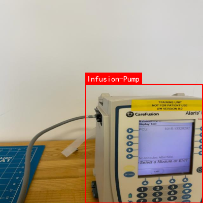 模型最终部署在医院智能监控系统中,实现了输液泵设备的实时检测和状态监控。系统通过视频流分析,自动识别输液泵位置、工作状态,并生成设备使用报告。
