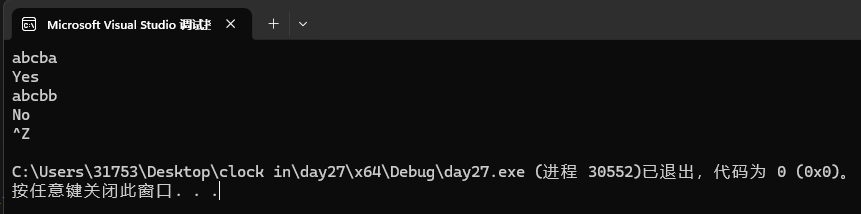 输入一串字符,其长度小于200,判断该串字符是否构成回文。 所谓回文是指从左到右和从右到左读一串字符的值是一样的,如:ABCBA。