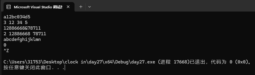 对于一个字符串,编程找出其中的所有整数。例如,字符串"a12bc34d05",其中有整数12、34、5,字符串中的字符只有字母与数字。
