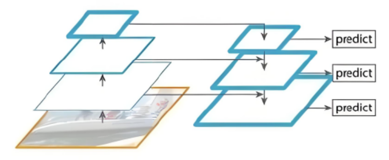 放弃了重利用更高分辨率的feature map,但是这些feature map对检测小目标非常重要,像SSD,使用网络中多个不同层的特征图分别进行预测: