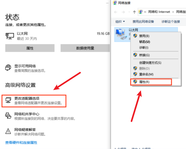 (2)找到正在用的网络连接(比如 "以太网" 或 "WiFi"),右键选 "属性"