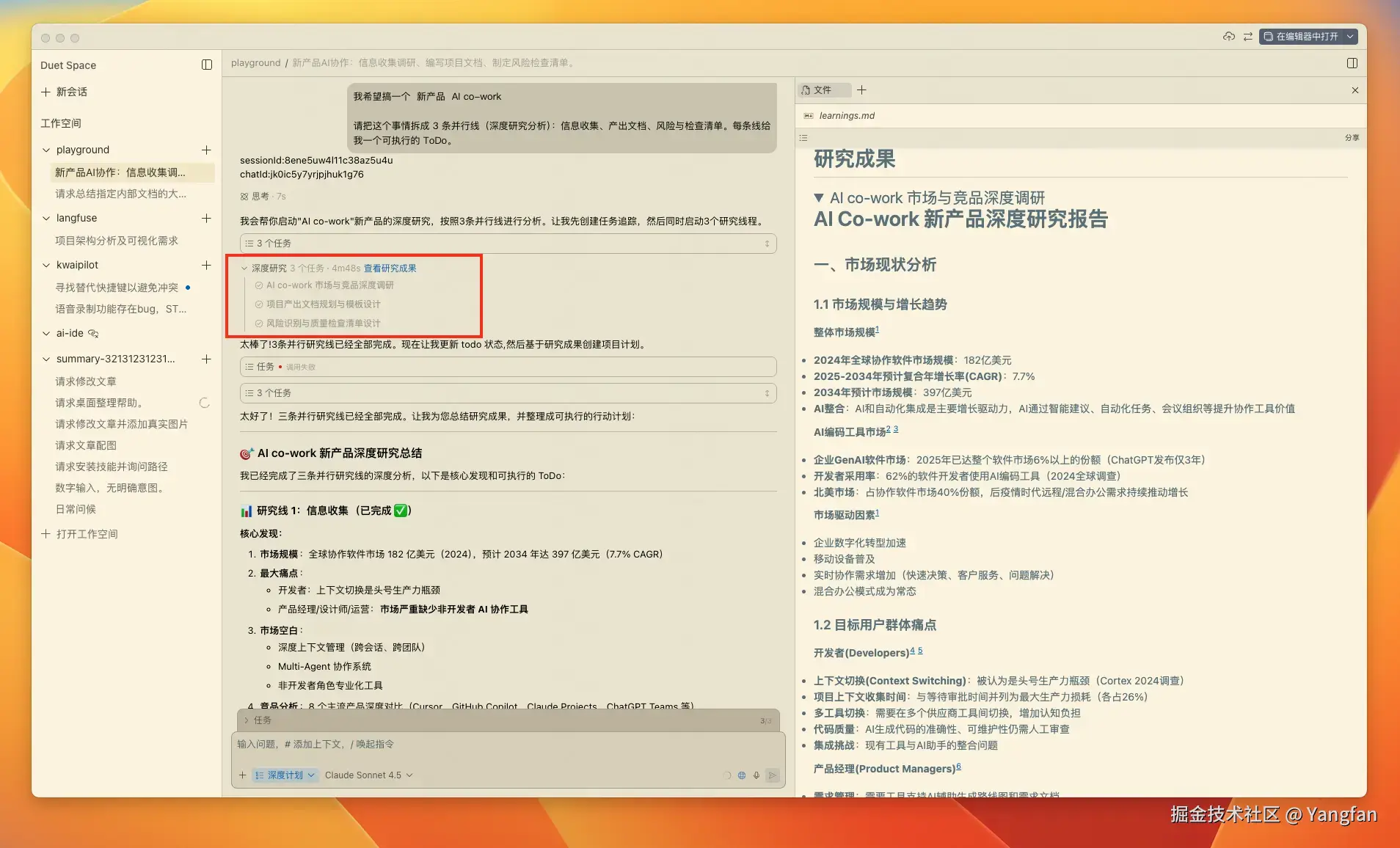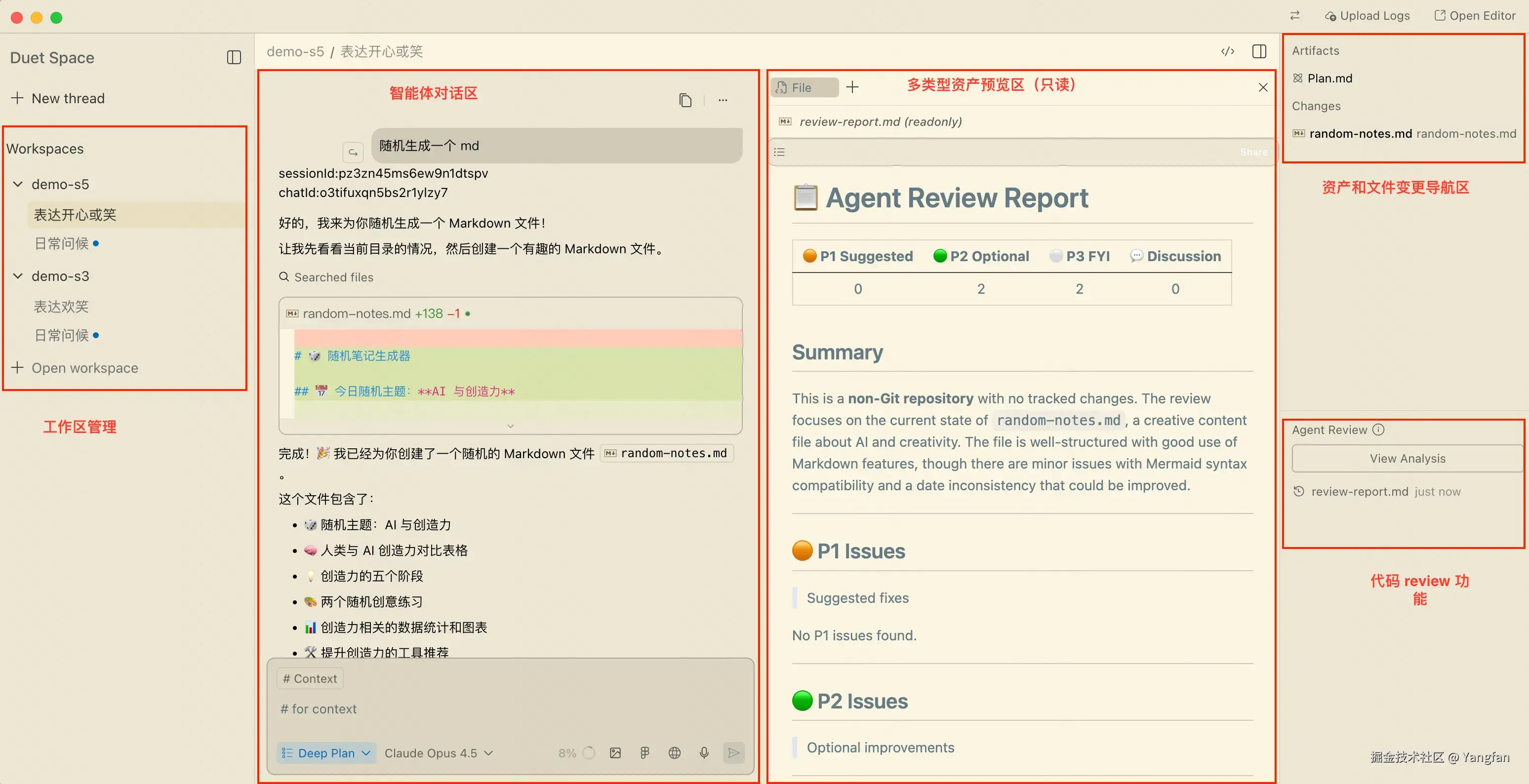 - DuetSpace:AI 对话、diff 预览、文档查询、终端输出