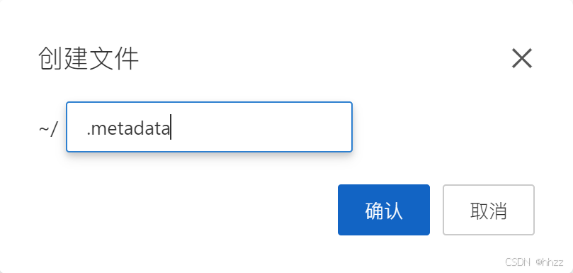 - 在创建文件对话框中,输入 .metadata ,然后点击确认按钮。