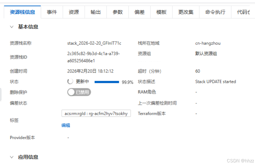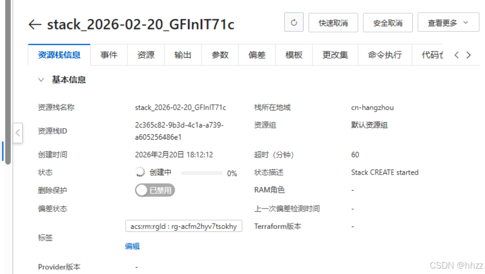 这时候在资源栈信息中的状态栏,会显示创建中。