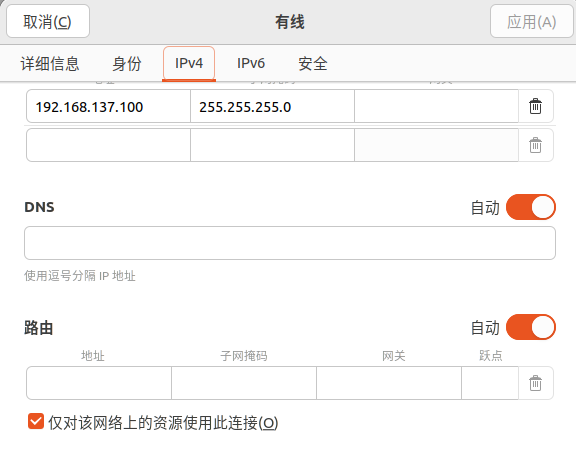 乌班图 ens33 手动配置IPv4(连接开发板)