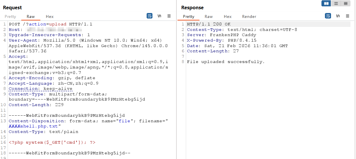 什么意思呢?比如我们现在上传一个ȺȺȺȺshell.php.txt,然后get请求ȺȺȺȺshell.php.txt.php,FrankenPHP会这样解析: