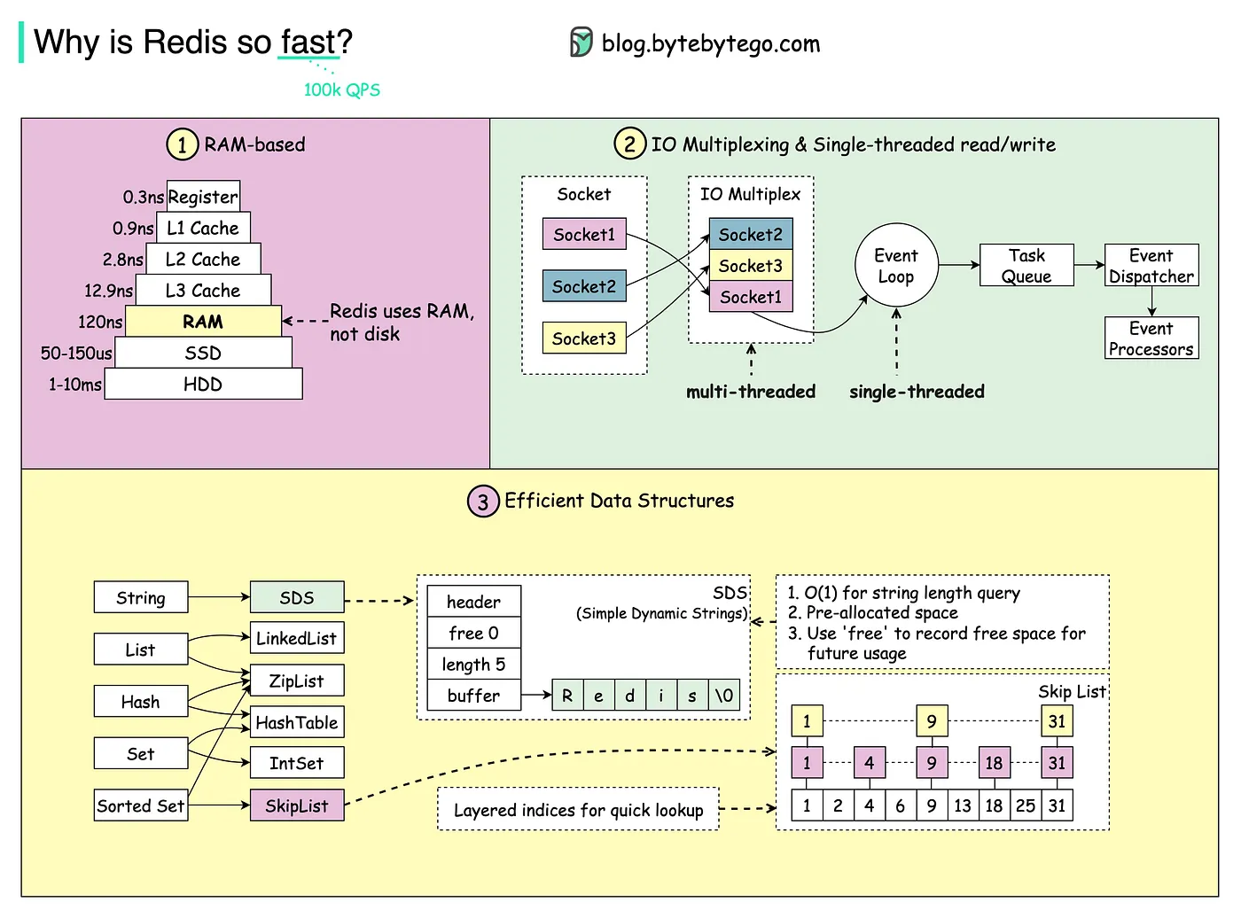 数据存储:它主要的特点是把数据放在内存当中,相比直接访问磁盘的关系型数据库,读写速度会快很多,基本上能达到微秒级的响应。
