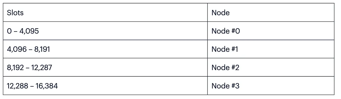 例如,如果我们有 4 个 Redis 实例,那么每个实例会负责 4000 多个哈希槽。