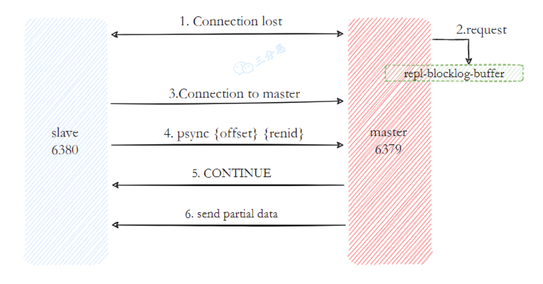 - 复制偏移量: 偏移量越大意味着从节点的数据越新,复制的越完整。