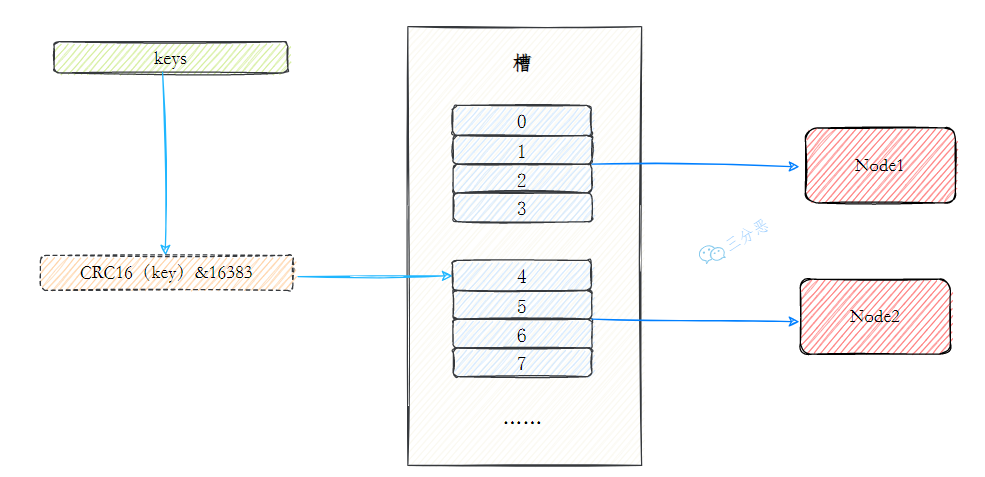 在计算哈希槽编号时,Redis Cluster 会通过 CRC16 算法先计算出键的哈希值,再对这个哈希值进行取模运算,得到一个 0 到 16383 之间的整数。