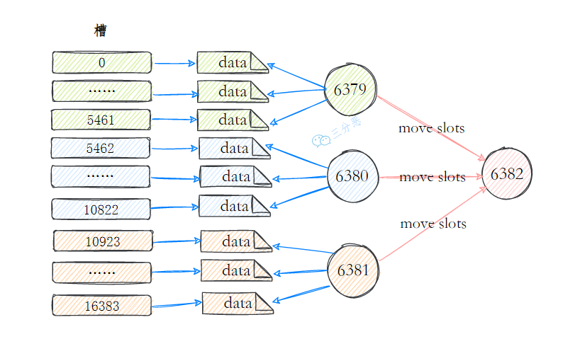 握手完成后,可以通过 CLUSTER ADDSLOTS 命令为主节点分配哈希槽。当 16384 个槽全部分配完毕,集群正式进入就绪状态。