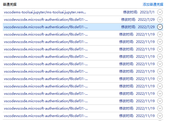 一看凭据,发现有大量的2022-2023年间VsCode存储的微软账号登录凭据,指定是当时设计的有点问题。