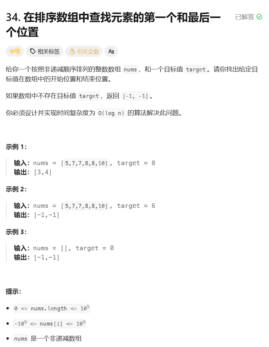 //循环条件:left<right,不是<=,题目要求返回目标值的起始和结束位置,