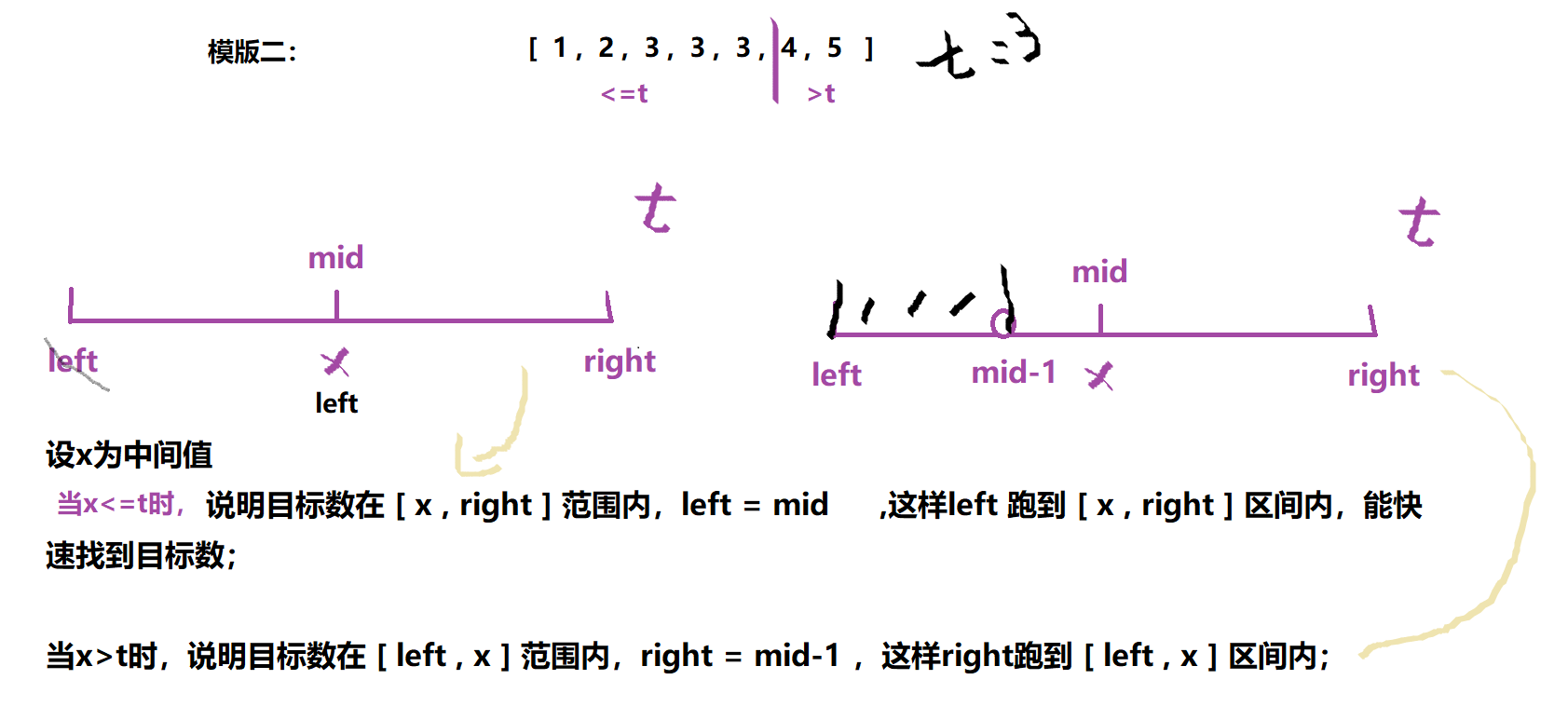 right=mid-1;//如果大于,让right跑到mid-1的位置,变成[target,mid-1]