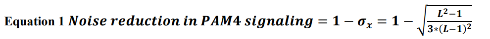 与NRZ(不归零)信号相比,PAM-4所需的信号带宽大约减少了一半。由于频率相关的损耗较低,这相当于获得了约1.6倍(即4.1 dB)的信号增益。但受限于非理想的频率相关介质损耗和导体损耗,该增益并非与带宽比例直接对应。PAM-4信号的幅度仅为NRZ的1/3。然而,串扰和回波损耗的改善程度并不相同,如下面公式所示(其中PAM-4的L=4),它们仅降低了原来的约1/4。下面公式算出来的值约0.75。