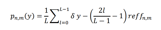 每个采样点的个体概率pn,m(y)由reffn,m、信号电平数(L)和狄拉克δ函数δ(y)确定。