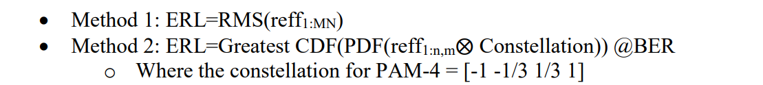 对于每个采样点m,反射幅度集合ERLm是满足P(y0) = BER(或以COM参数表示的DER0)关系的|y0|的正分贝值。ERL是ERLm集合中的最小值。当分别指端口1或端口2时,ERL记为ERL11或ERL22。