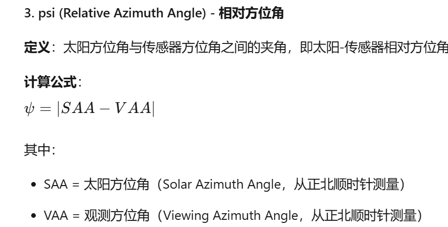 psi = 从影像元数据获取或计算(relative azimuth angle)