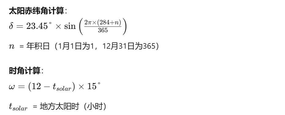 使用专业库进行精确计算:对于科研应用,建议使用pvlib、PyEphem或SolarPosition.jl进行太阳位置计算,而非简化公式