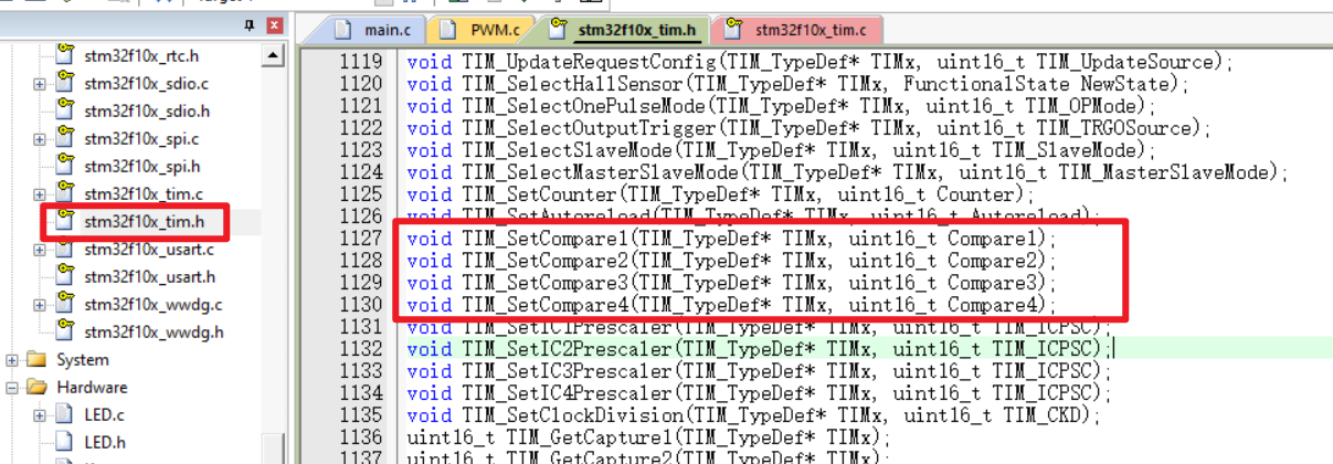 TIM_OC3Init配置通道3。 - 使能定时器:启动TIM2。
