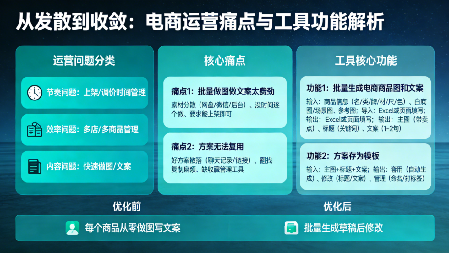 我想做一个工具,帮电商运营自动生成商品的主图和文案。
