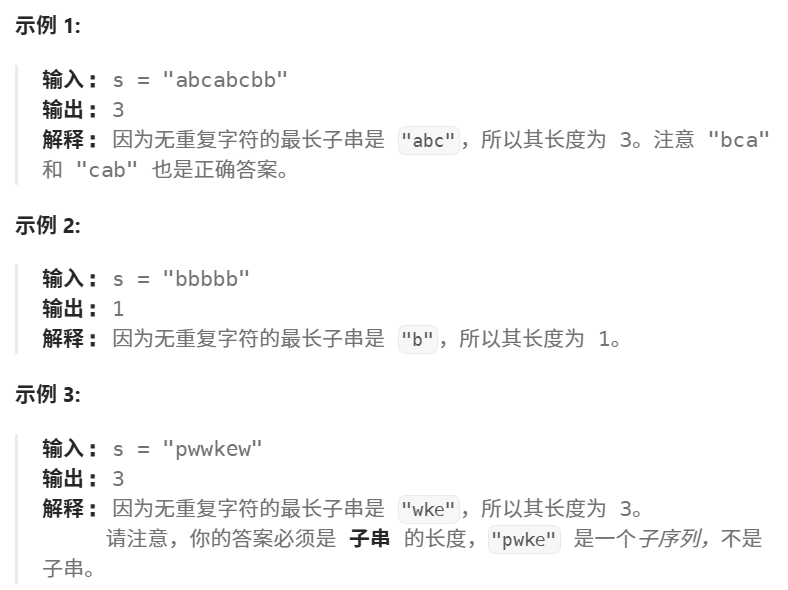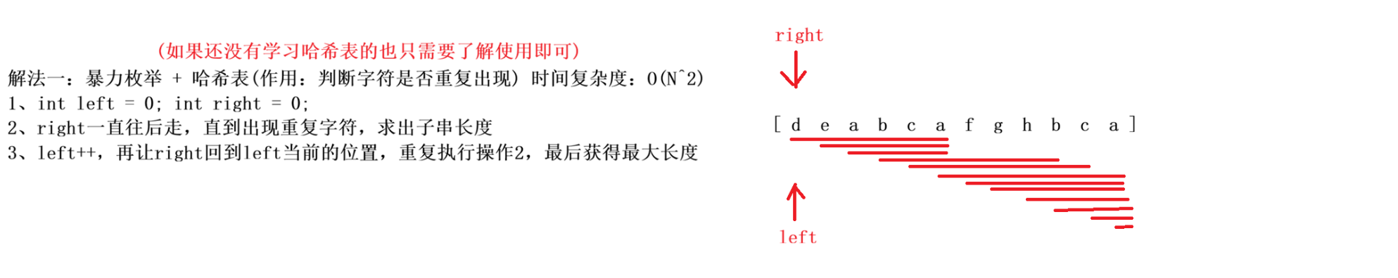 枚举【从每一个位置】开始往后,无重复字符的子串可以到达什么位置。找到其中长度最大的即可。