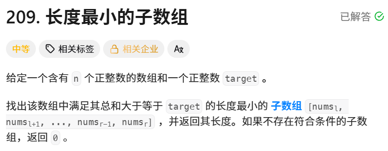 // int min_len = n + 1; //先将最小长度置为非正常值,如果最后没有发生变化则说明没有符合条件的子数组