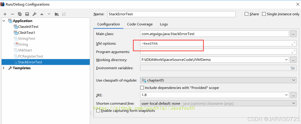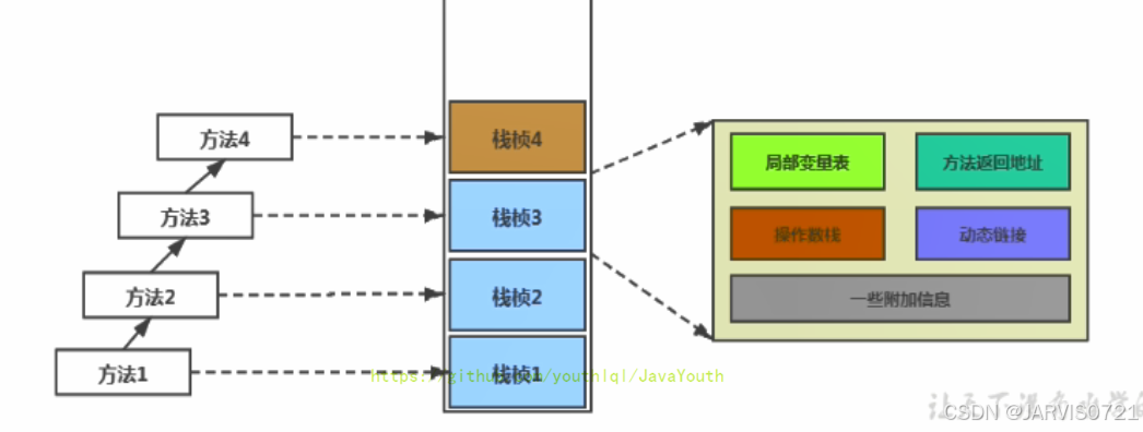 我们可以使用参数**-** Xss 选项设置线程的最大栈空间,栈的大小 直接决定了函数调用的最大可达深度
