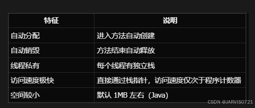 一块连续内存空间 ,CPU自动管理,用于存储(Java变量类型角度):