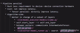 还可以看一下vllm/vllm/model_executor/models/llama.py这里面的管宇TP PP的代码,初学者学代码先用llama要比用deepseek更好,