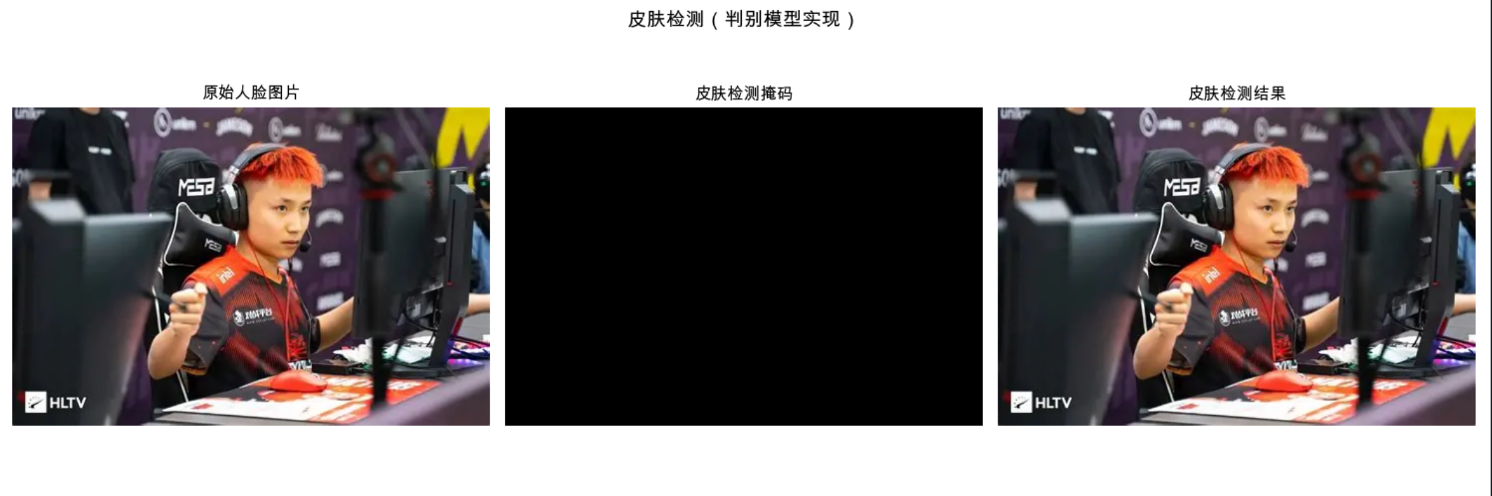 - 中图:皮肤检测掩码(白色为检测到的皮肤区域)