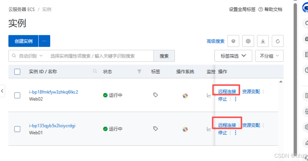 本实验已经自动在杭州地域创建好了两台ECS服务器,具体配置如下: