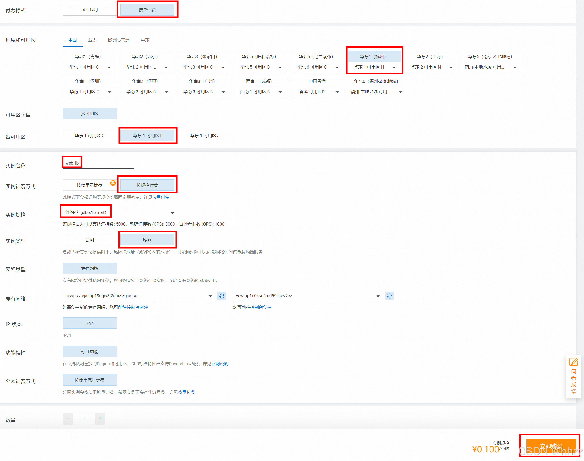 - 按照指定要求完成传统型负载均衡CLB的购买;