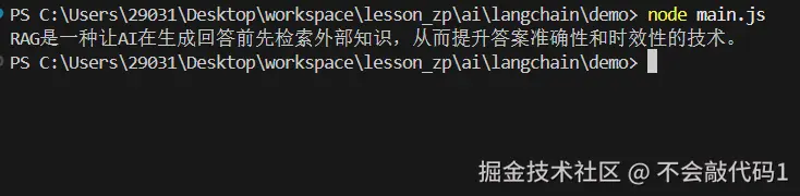 const res = await model.invoke('用一句话解释什么是RAG')