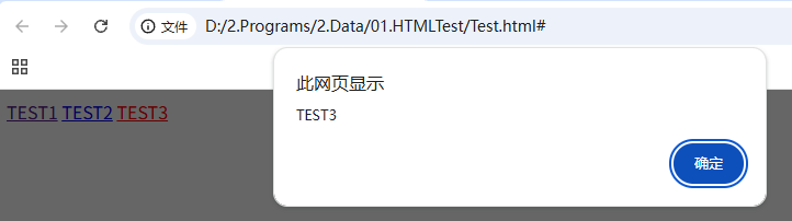 <a href="#" onclick="alert('TEST1')">TEST1</a>