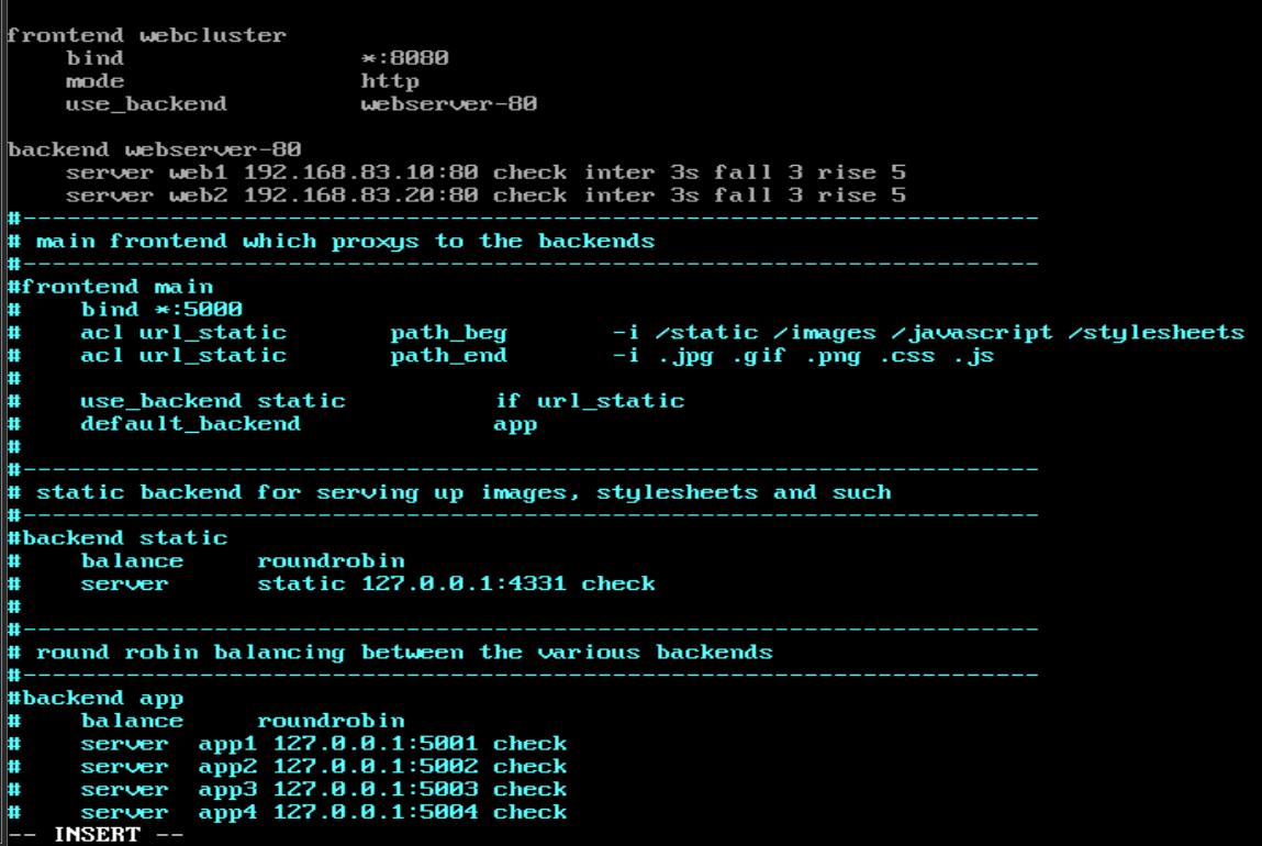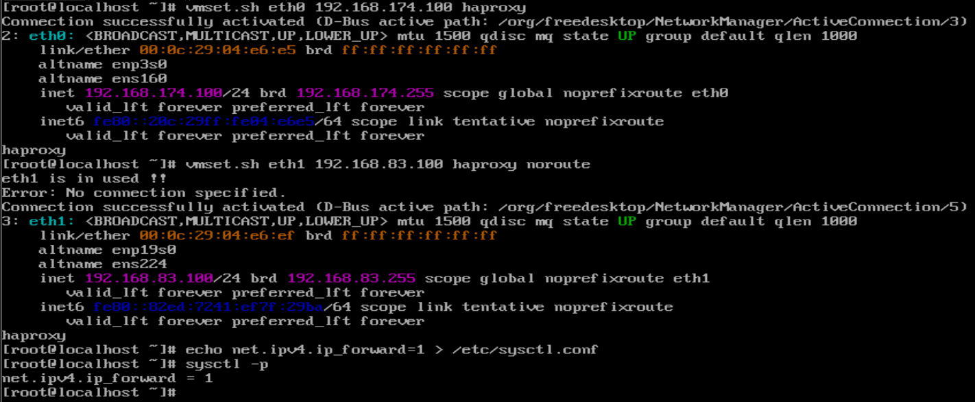 | 调度器haproxy(双网卡) | eth0(NAT): 192.168.174.100 eth1(仅主机): 192.168.83.100 |