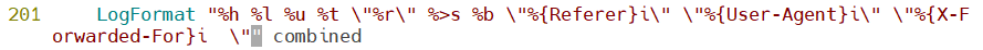 在201行添加 \"%{x-Forwarded-For}i 这段命令,保存退出,重启httpd服务生效