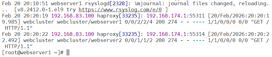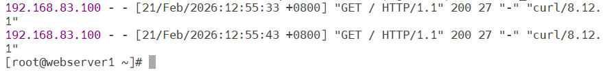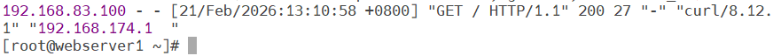 验证:在新页面上尝试连接haproxy,再在webserver1中查看access_log