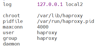 log global #指定日志地址和记录日志条目的syslog/rsyslog日