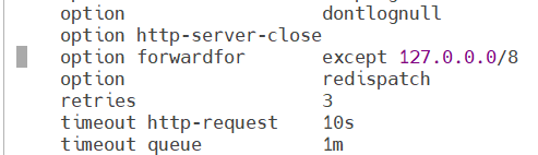 option forwardfor except 127.0.0.0/8 #透传客户端真实ip至后端web服务器