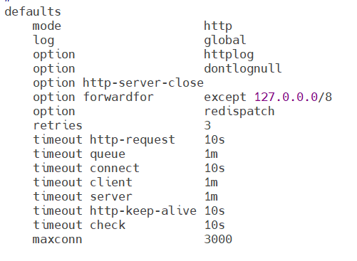 timeout http-request 10s #等待客户端请求完全被接收和处理的最长