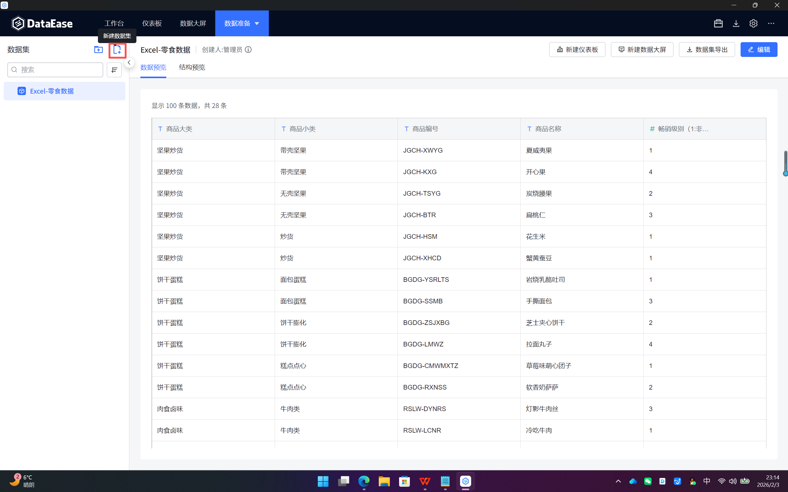 图7-11 "SQL-零食销售明细"数据集预览界面