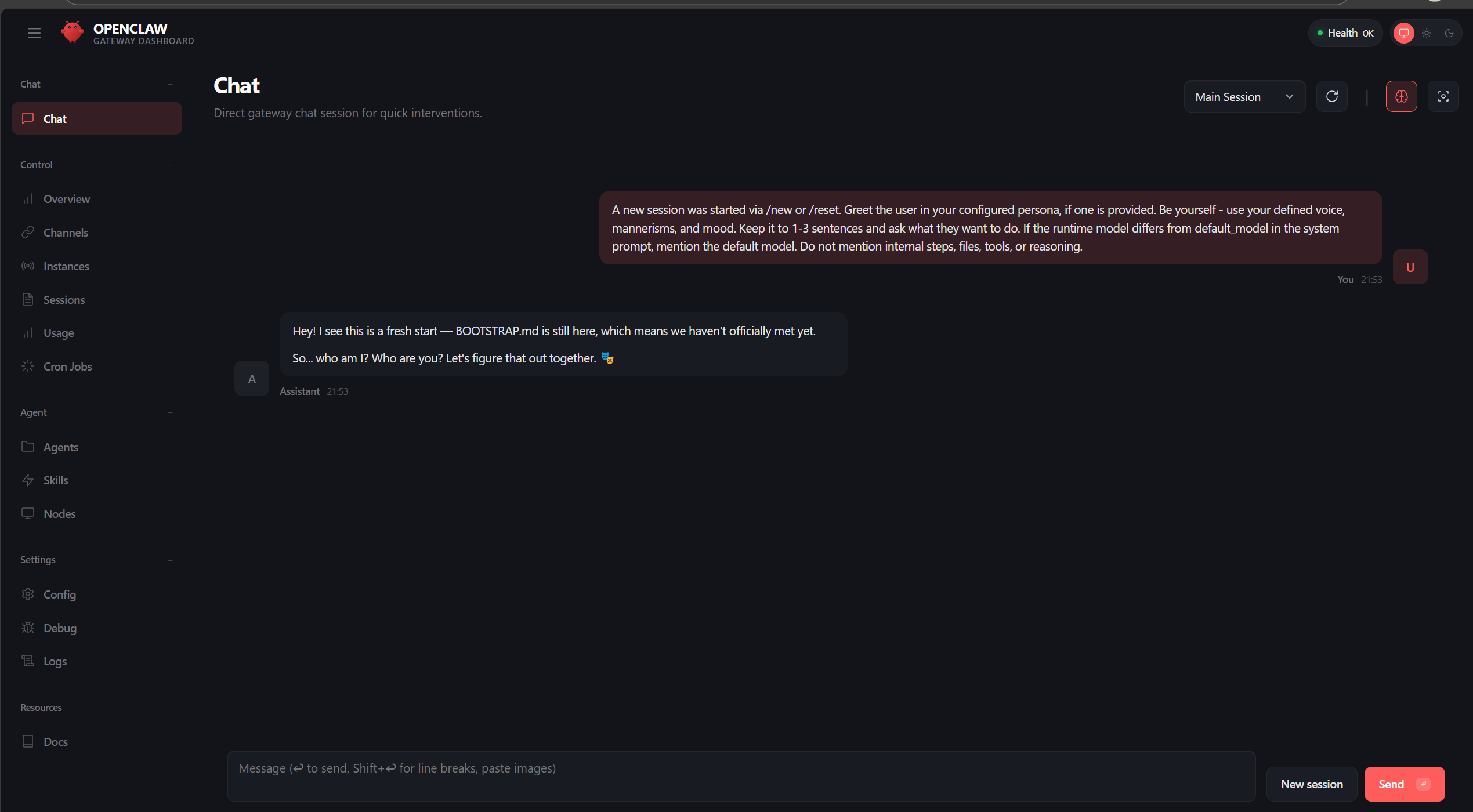 然后回车,此时就会跳转到web界面,即开始chat,提需求和执行任务了,如下图: