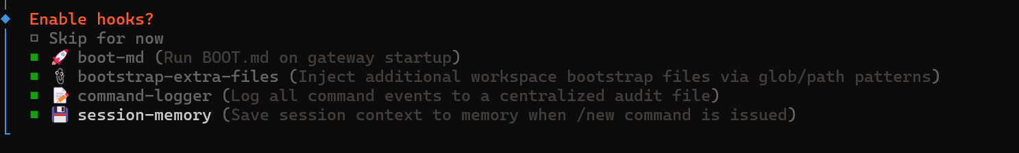 8、然后选择是否配置skill,skill就是封装的一个流程化的工作流,这里我先选择跳过,有需要可以后边再进行配置,如下图: