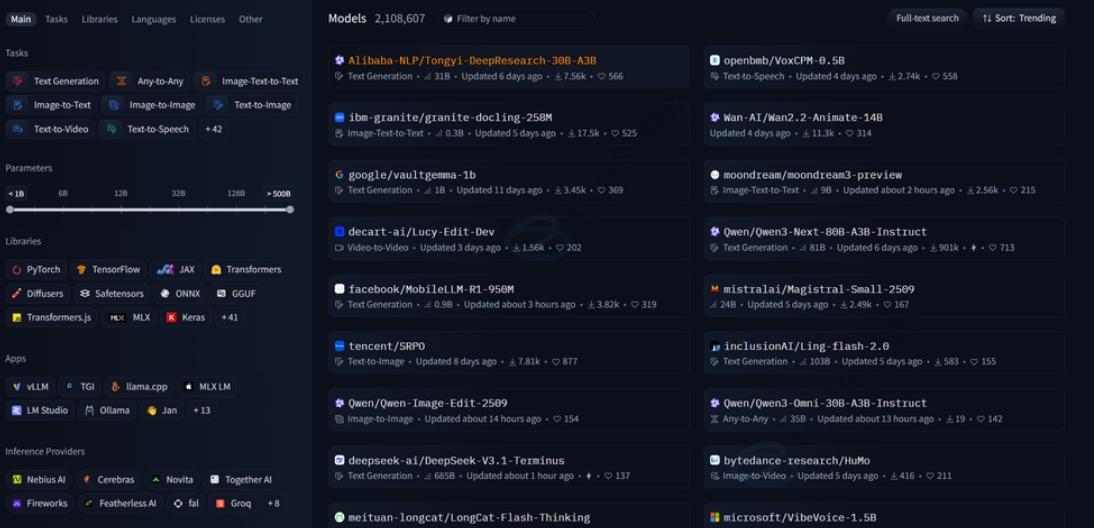 ⼀个知名的开源库和平台,该平台以其强⼤的 Transformer 模型库和易⽤的 API ⽽闻名,为开发者和研究⼈员提供了丰富的预训练模型、⼯具和资源。对于从事 AI 研究的⼈来说,其重要性不亚于 GitHub。