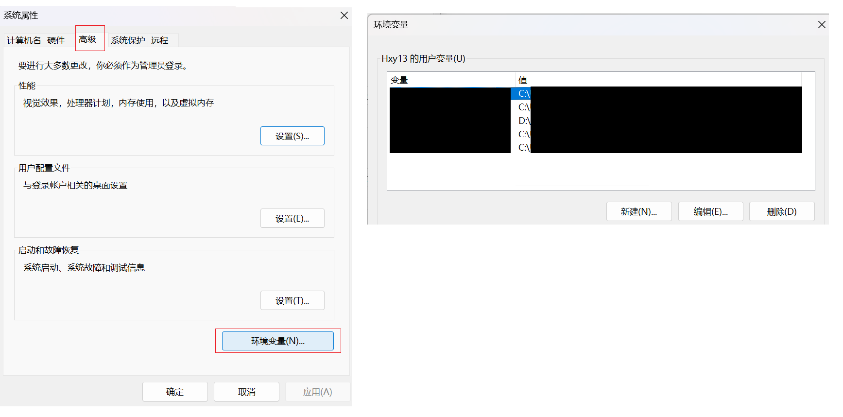 Windows下查看环境变量如下,一般Java, Python等解释型语言,在安装编译器/解释器的时候需要配置PATH